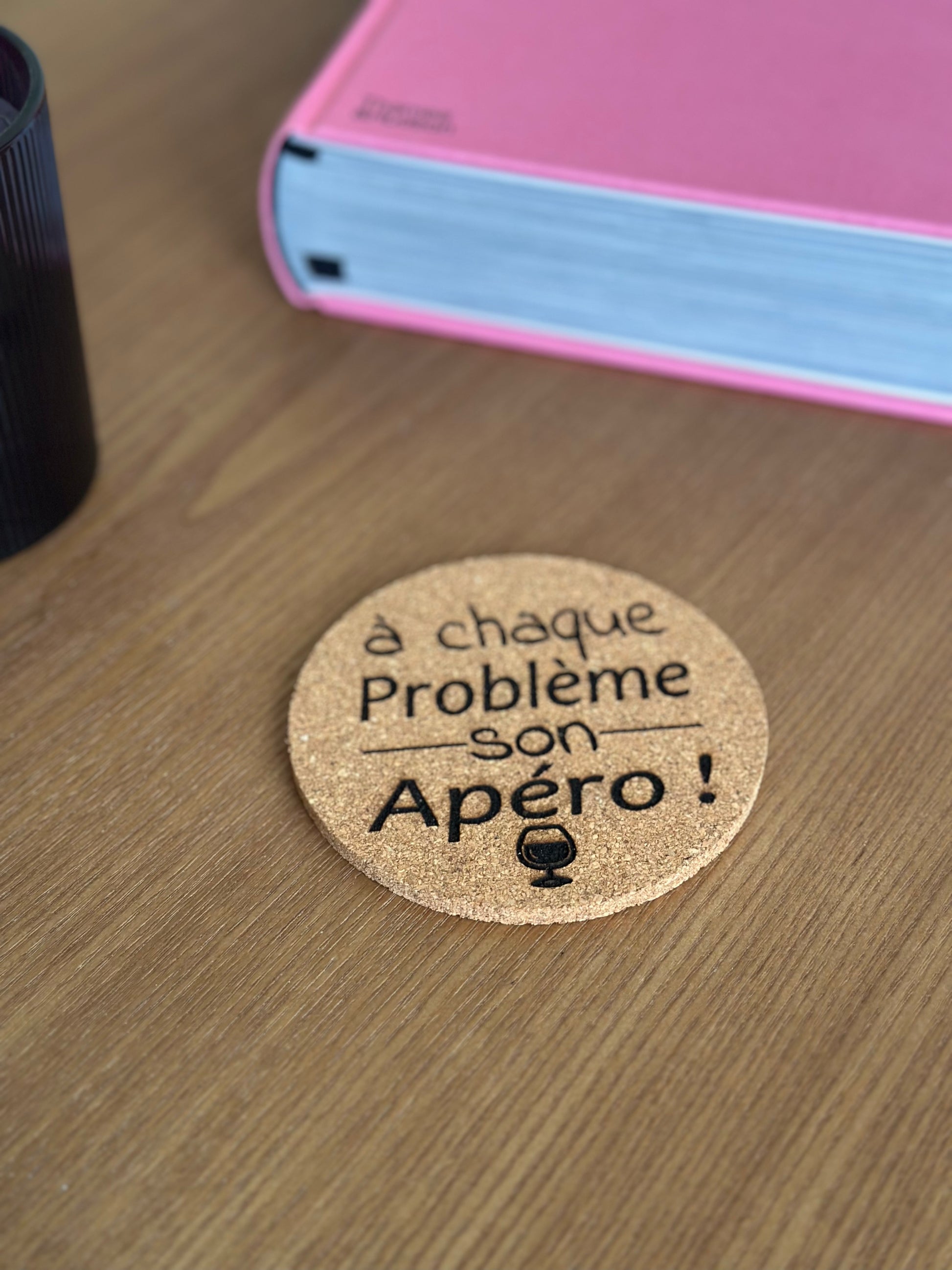 Ce sous-verres en liège "A chaque problème son apéro" vous permettent de protéger vos meubles tout en ajoutant une touche de style à votre apéritif. Parfait pour des soirées conviviales sans soucis.