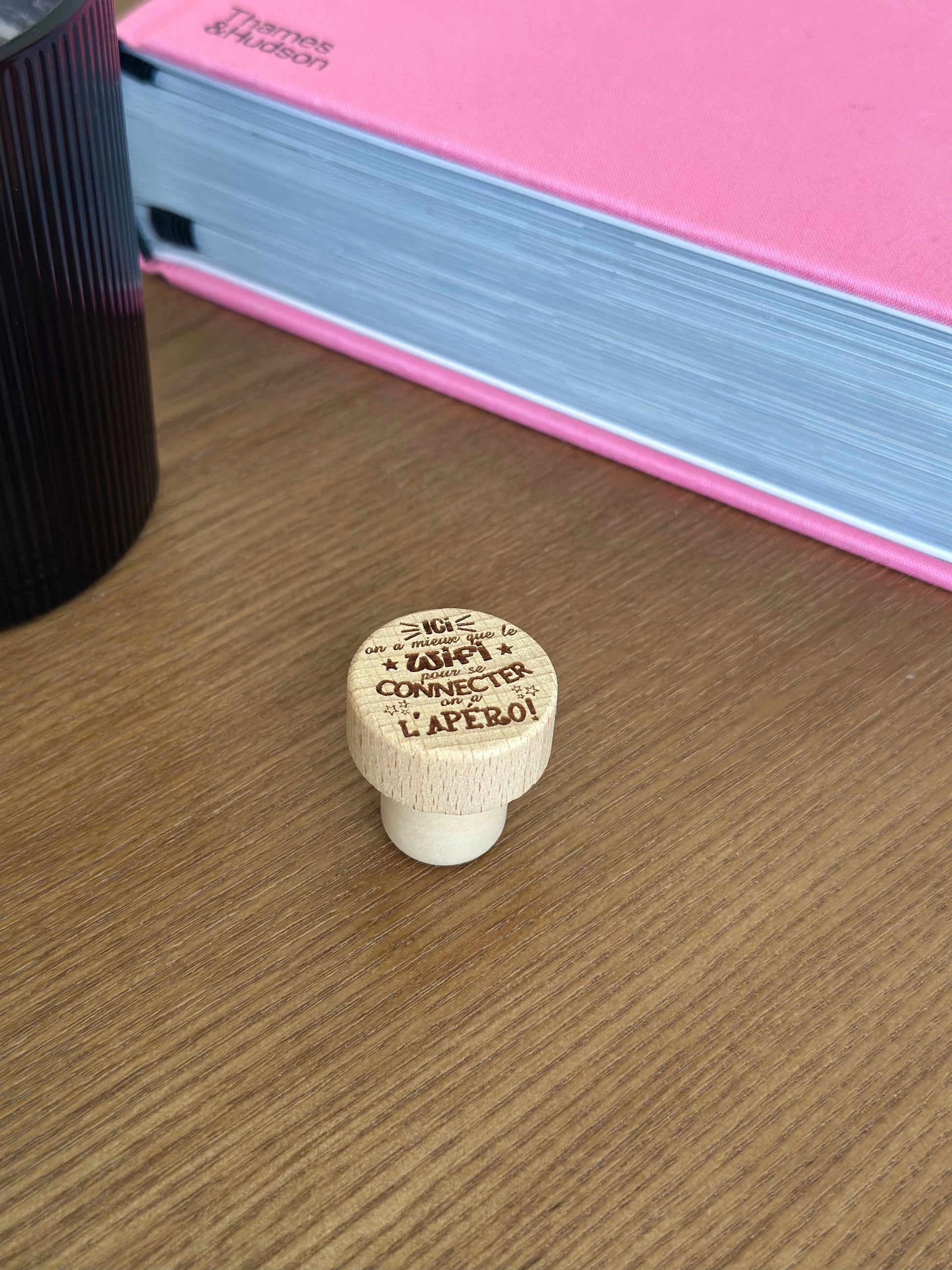 Profitez d'un apéro personnalisé avec les bouchons en bois "Apérol". Parfait pour les amateurs de vin et les occasions spéciales.
