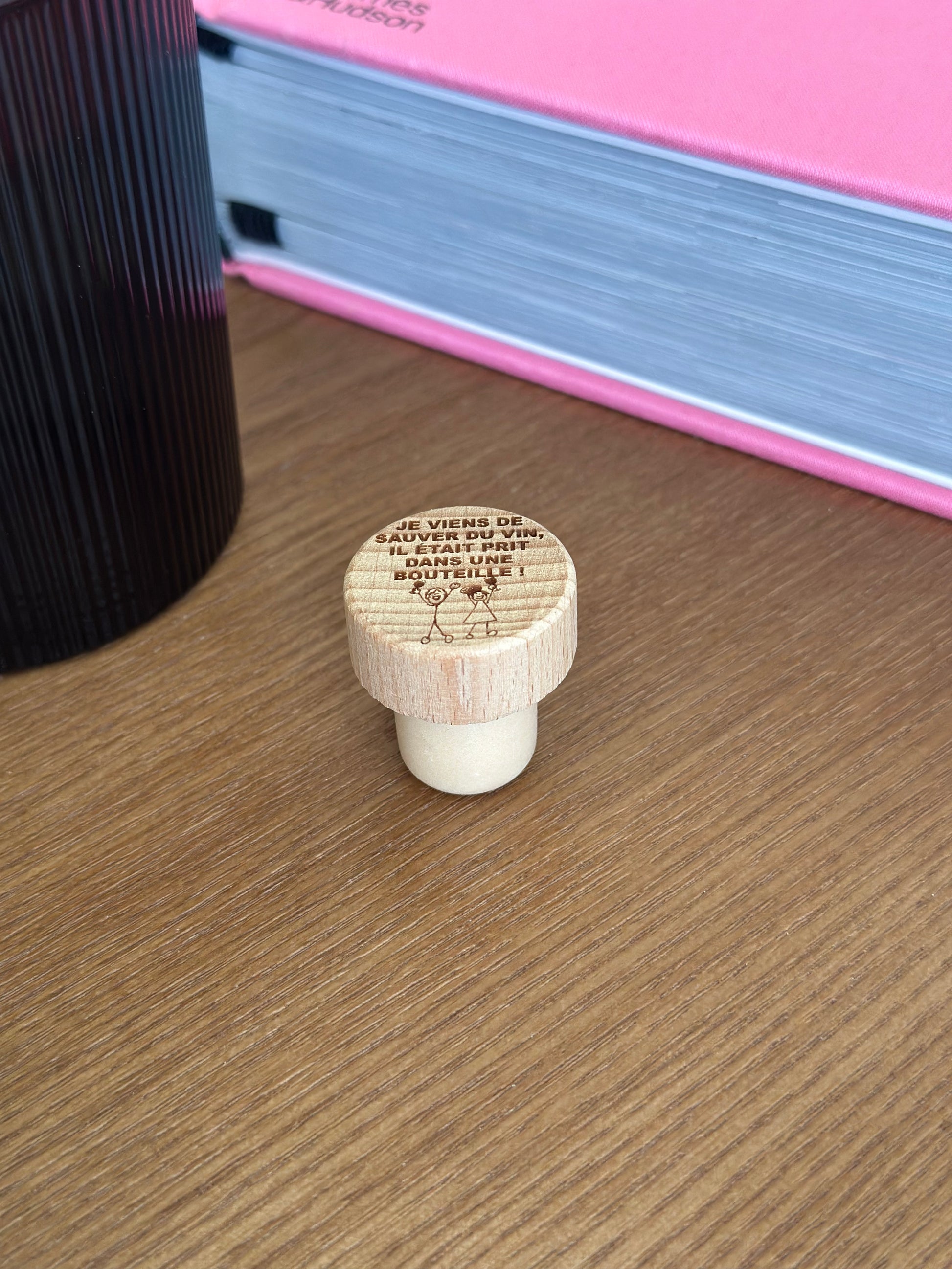 Ce bouchon en bois gravé est le moyen idéal pour garder votre vin frais et savoureux, tout en ajoutant une touche de style à votre collection de bouteilles. Son inscription "Je viens de sauver du vin, il était pris dans une bouteilles" ajoutera une touche d'humour à vos soirées vin et fromage. Fabriqué avec des matériaux de qualité, ce bouchon est à la fois fonctionnel et décoratif.