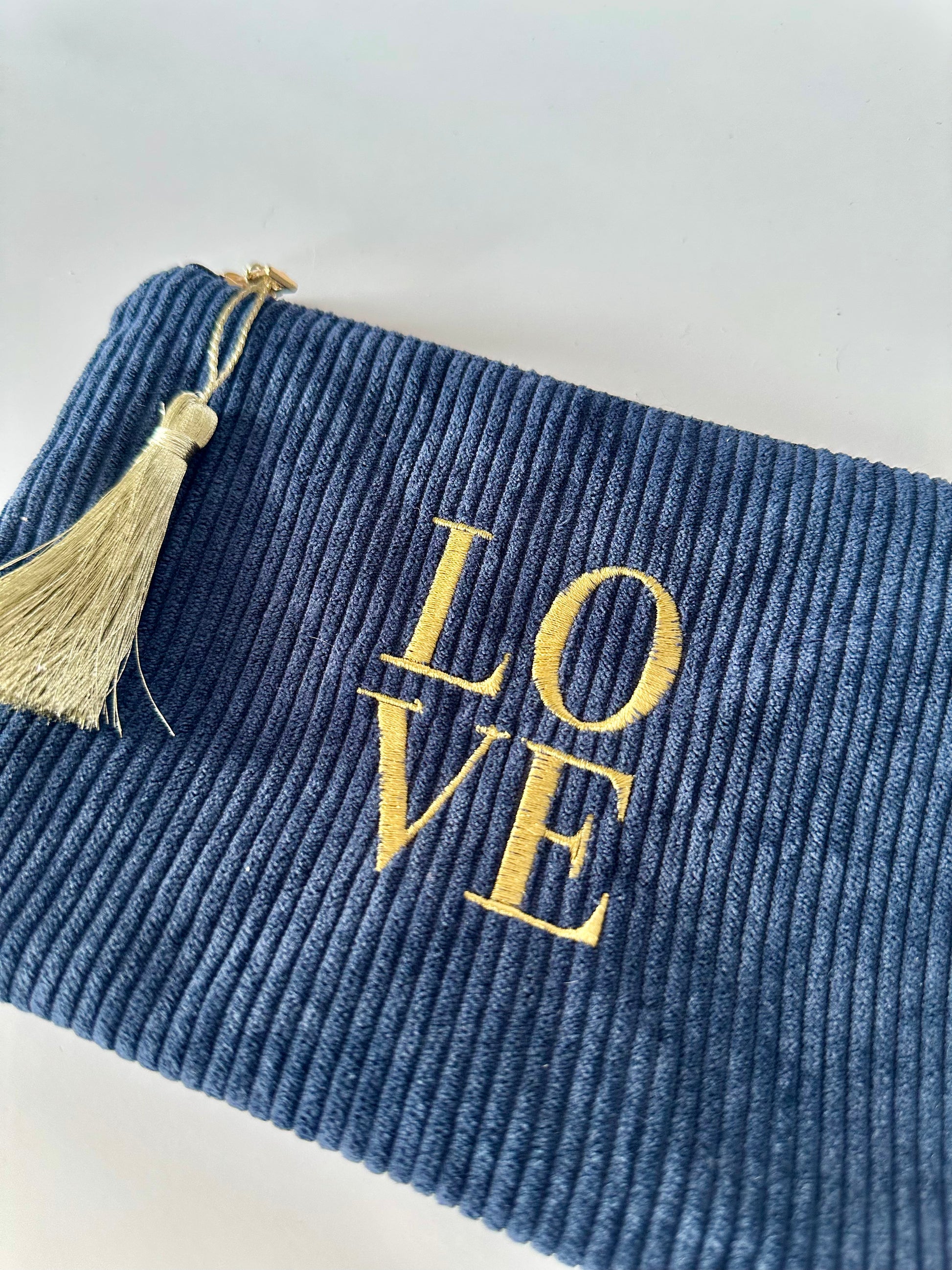Exprimez votre amour avec élégance grâce à notre pochette Love en velours bleu marine.
