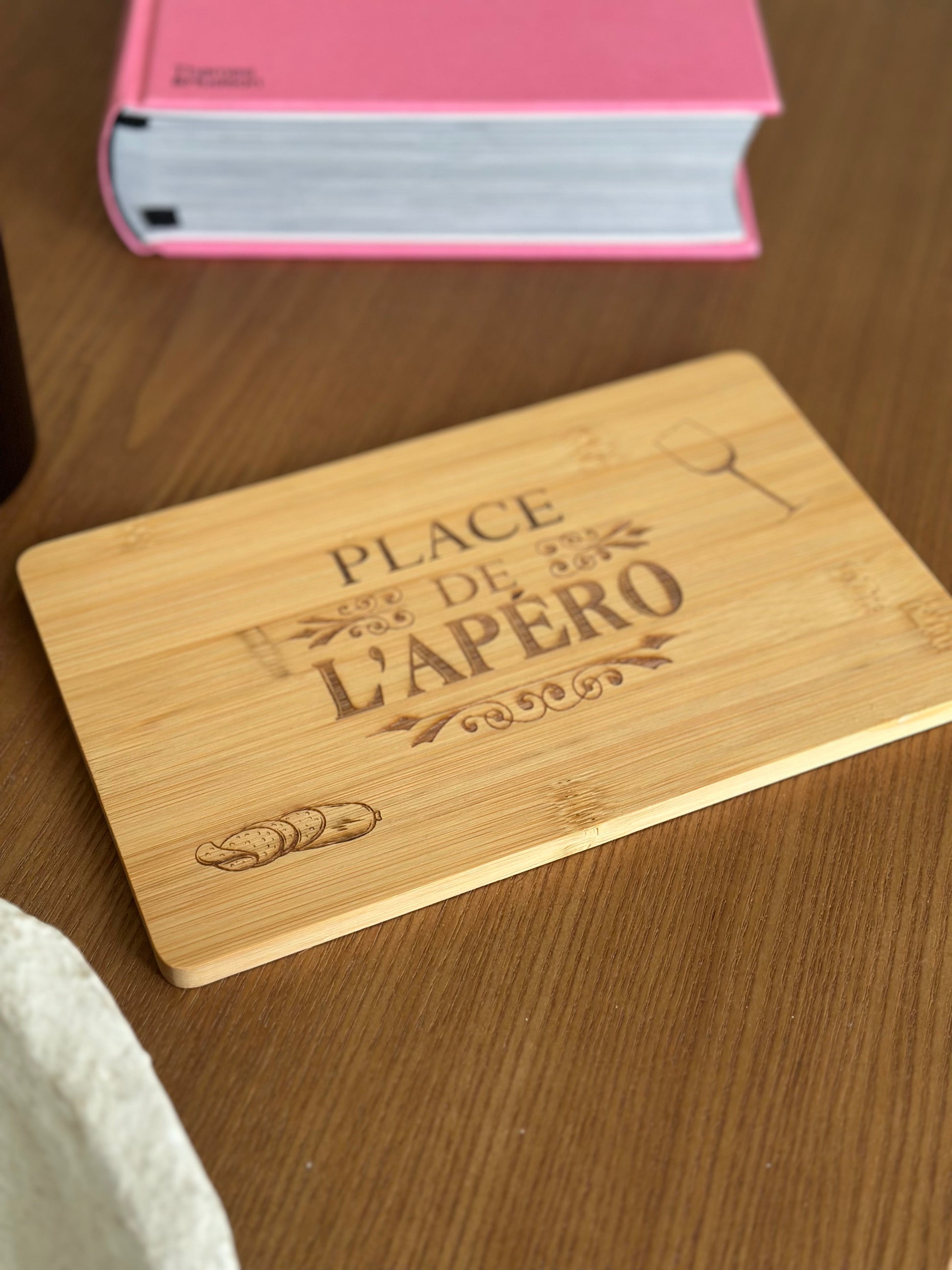 Cette planchette "Place de l'apéro" est spécialement conçue pour vos apéritifs. Fabriquée en bois de qualité supérieure, elle ajoutera une touche d'élégance à vos soirées entre amis ou en famille. Son design unique est à la fois pratique et esthétique.