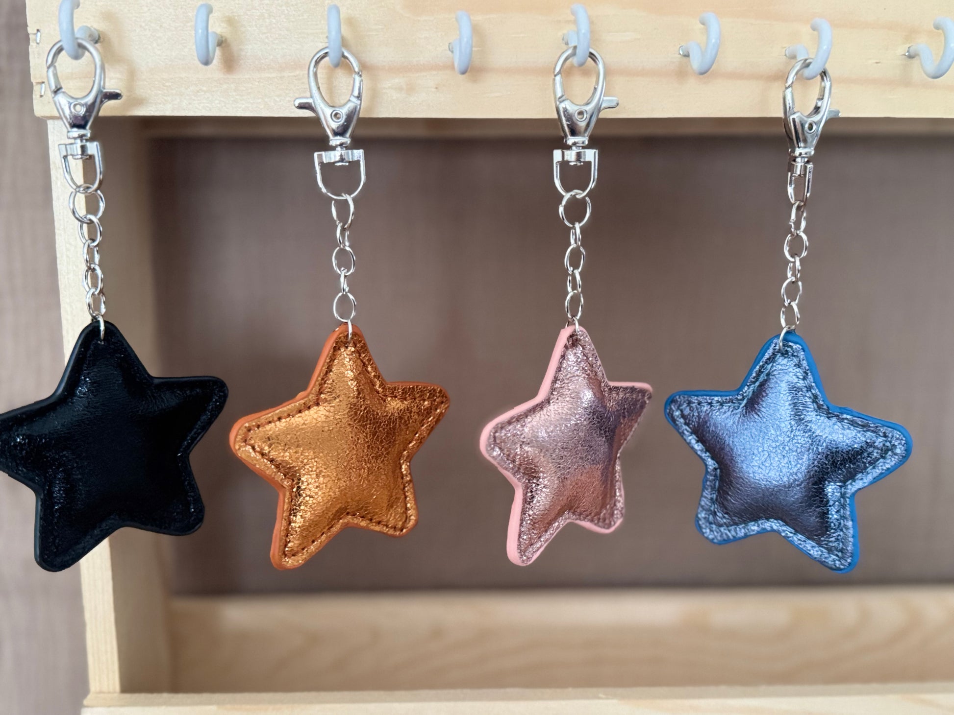 Découvrez notre porte-clé étoile en cuir vegan moelleux. Ses dimensions de 6,8x6,8 cm et son molusqueton en font un accessoire facile à transporter. Avec ses multiples couleurs en cuir irisé, cet étoile ravira tous les goûts.