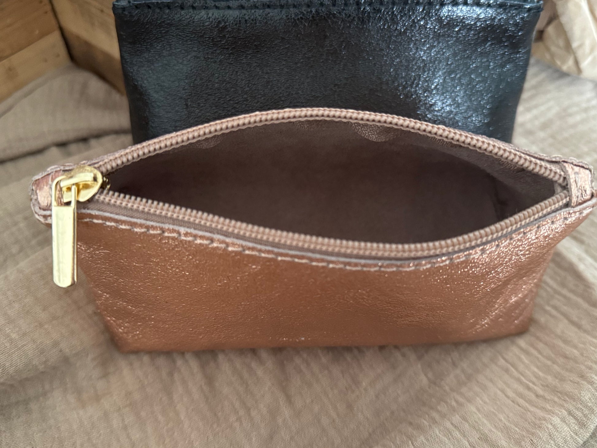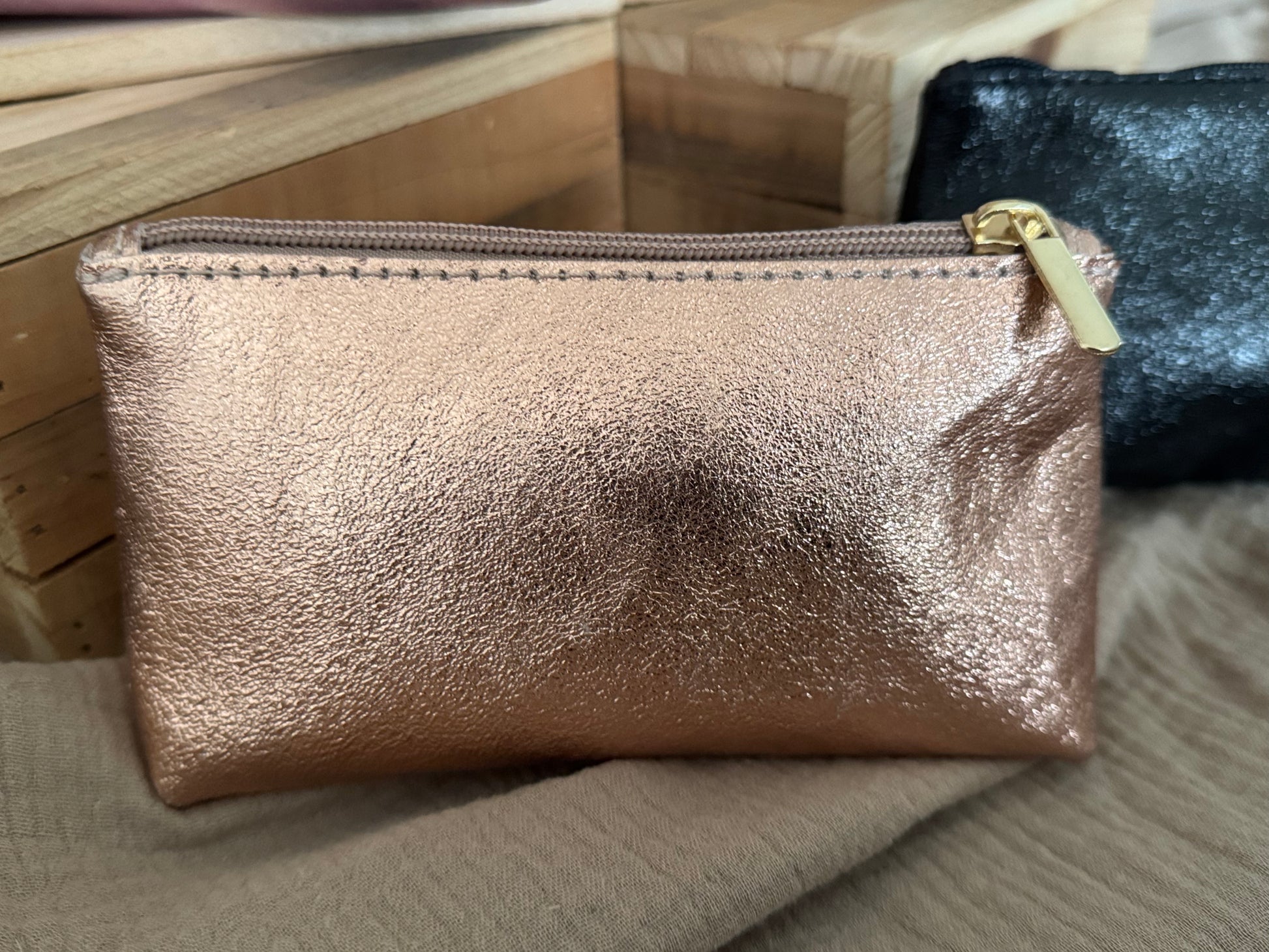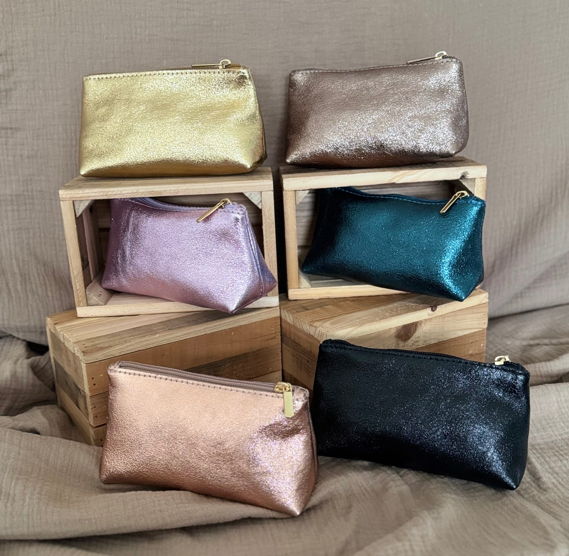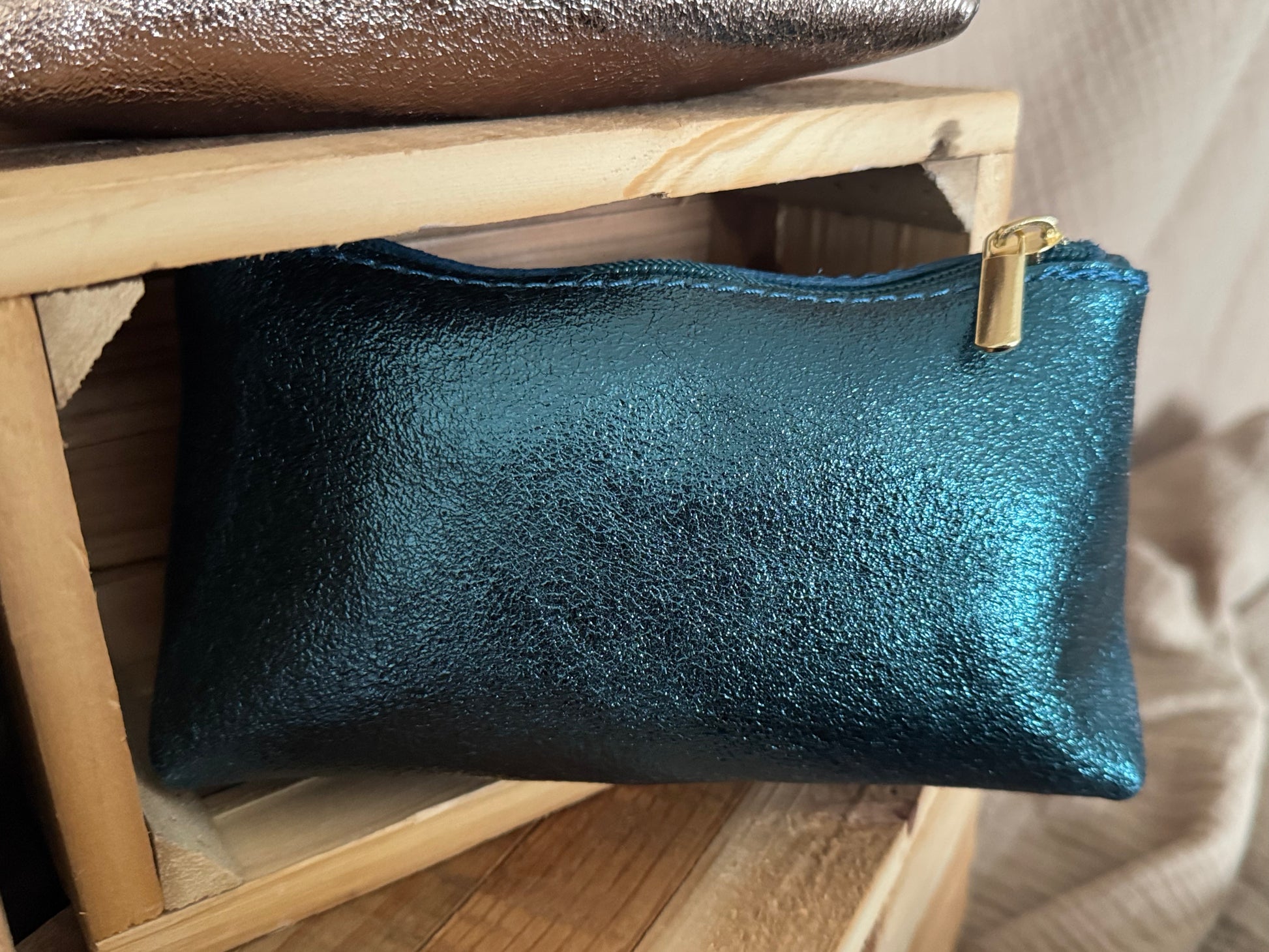 La trousse en cuir est un accessoire de beauté polyvalent de qualité supérieure. Fabriquée en cuir véritable de vachette en Italie, elle est à la fois une pochette de maquillage et une petite bourse pour votre argent. Disponible dans un arc-en-ciel de couleurs irisées, elle vous offre un compartiment spacieux avec fermeture éclair pour votre commodité. Dimensions: 10 x 16 x 6,5 cm