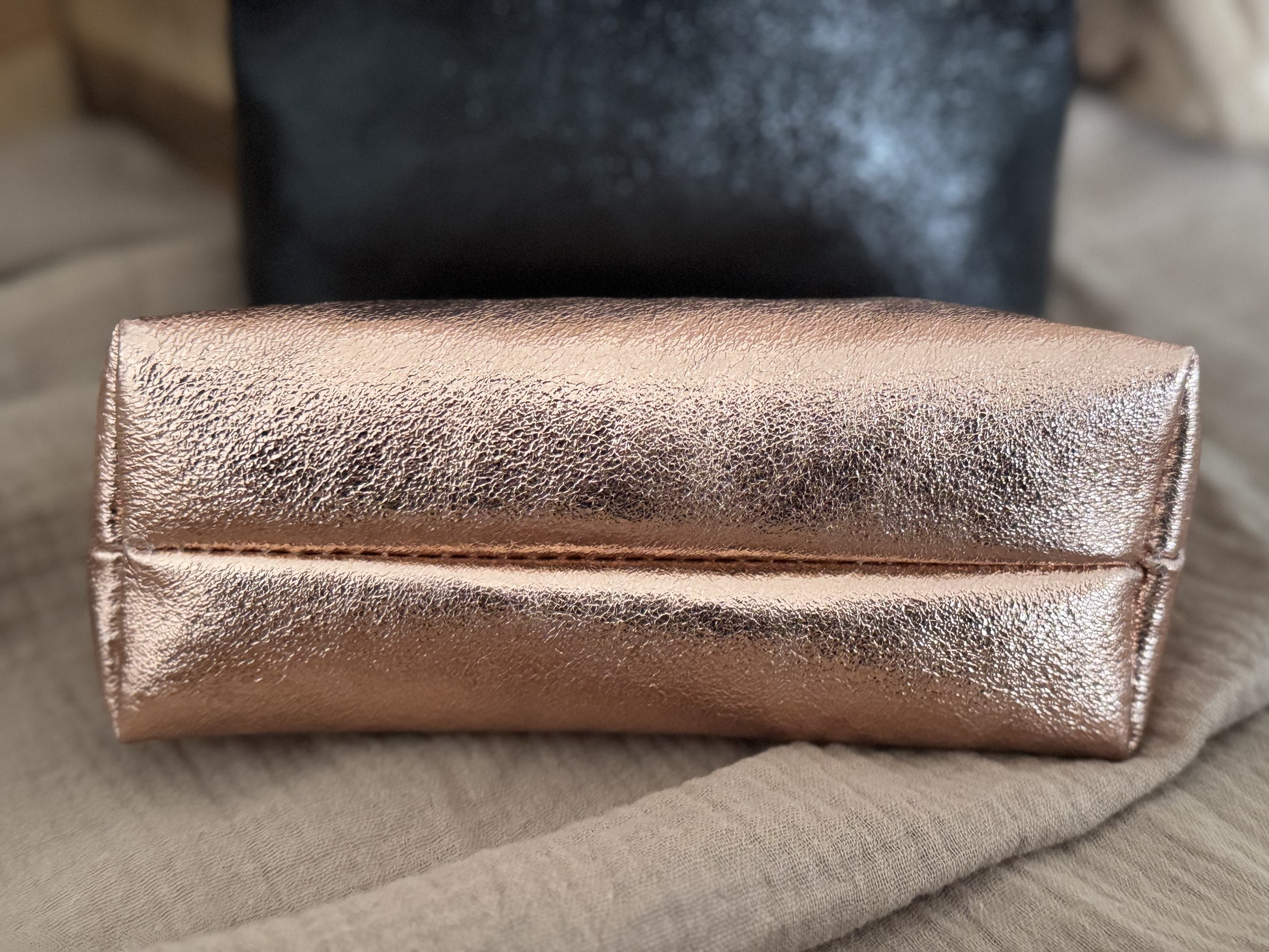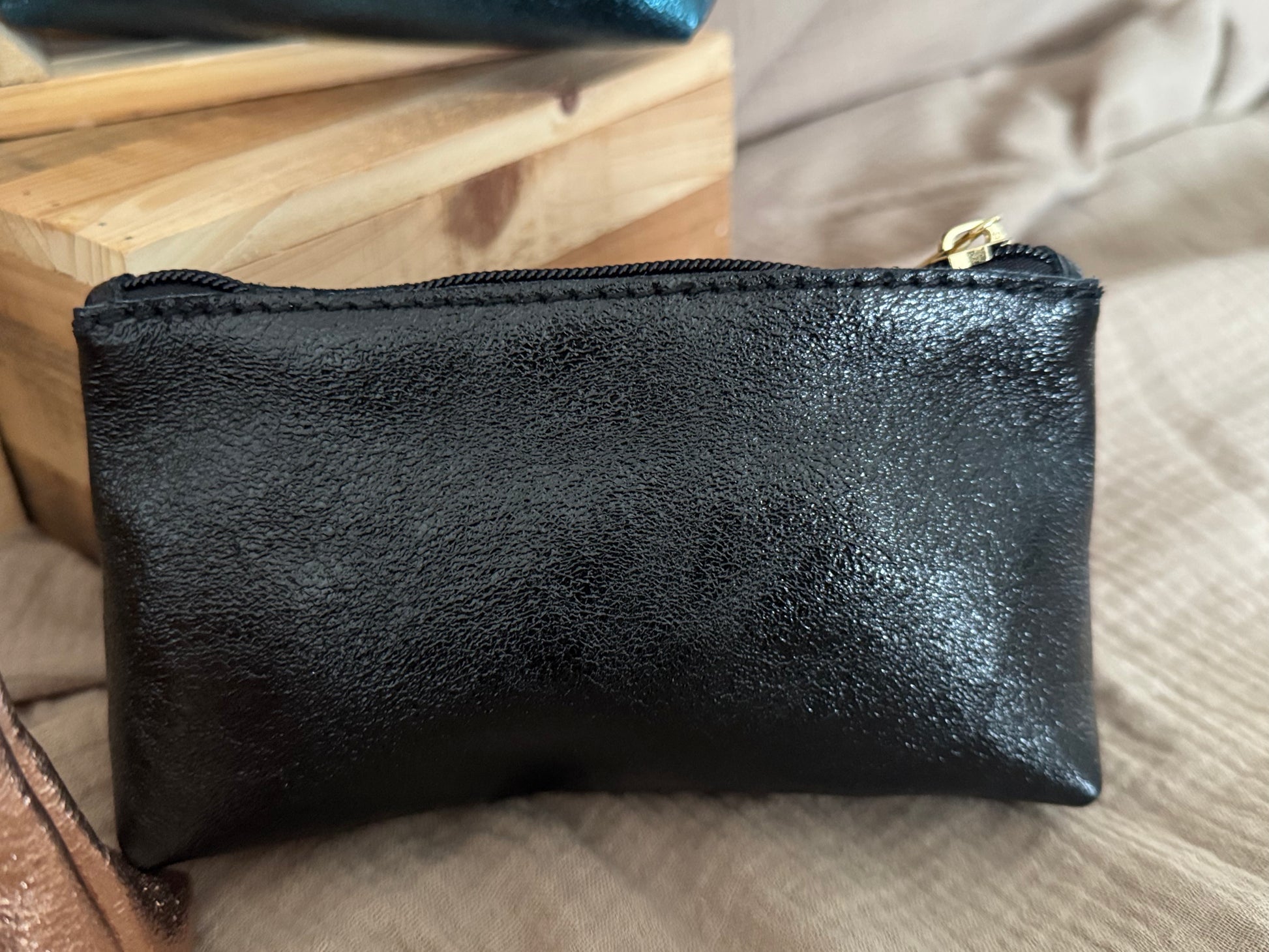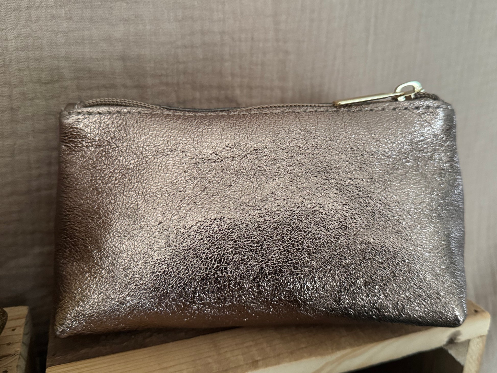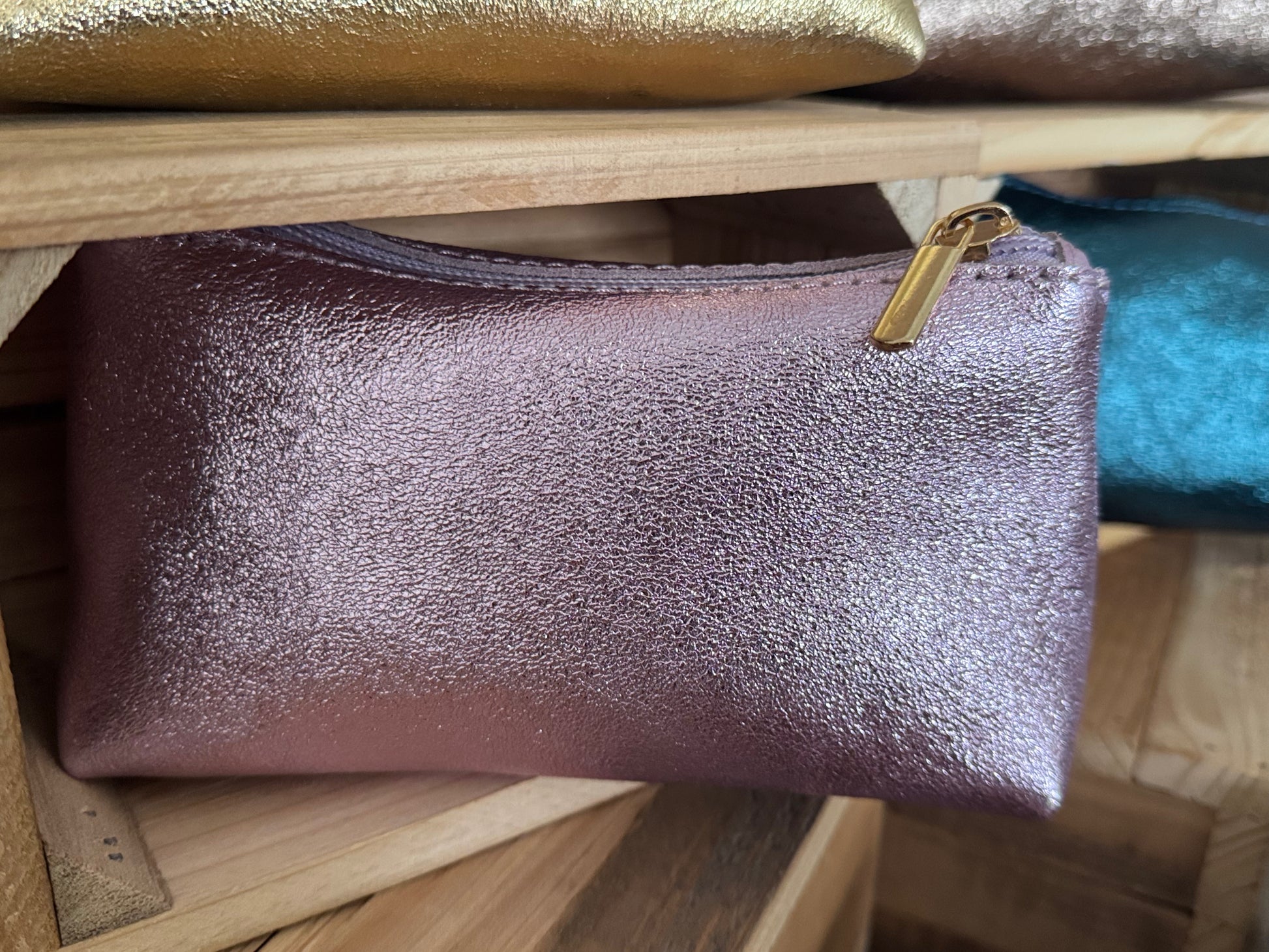 La trousse en cuir est un accessoire de beauté polyvalent de qualité supérieure. Fabriquée en cuir véritable de vachette en Italie, elle est à la fois une pochette de maquillage et une petite bourse pour votre argent. Disponible dans un arc-en-ciel de couleurs irisées, elle vous offre un compartiment spacieux avec fermeture éclair pour votre commodité. Dimensions: 10 x 16 x 6,5 cm