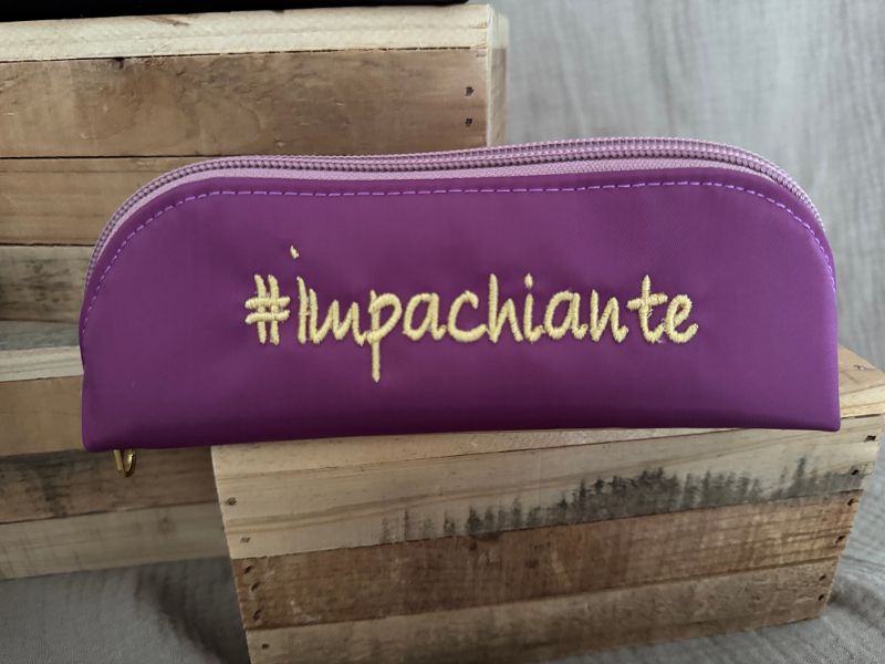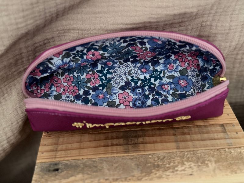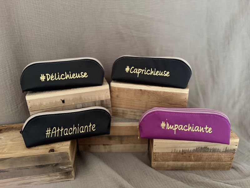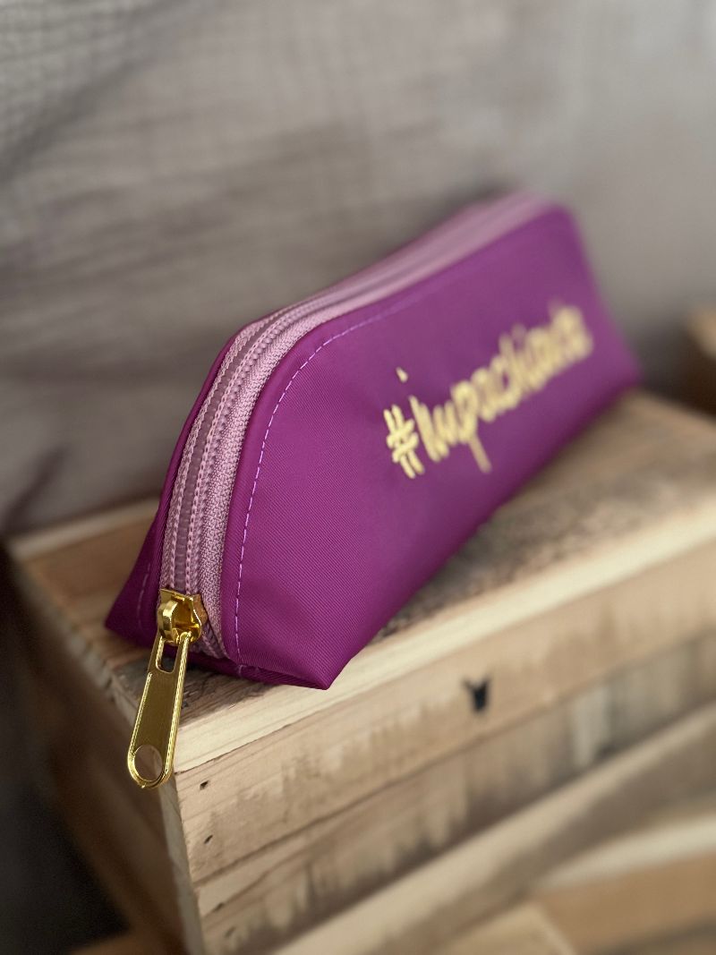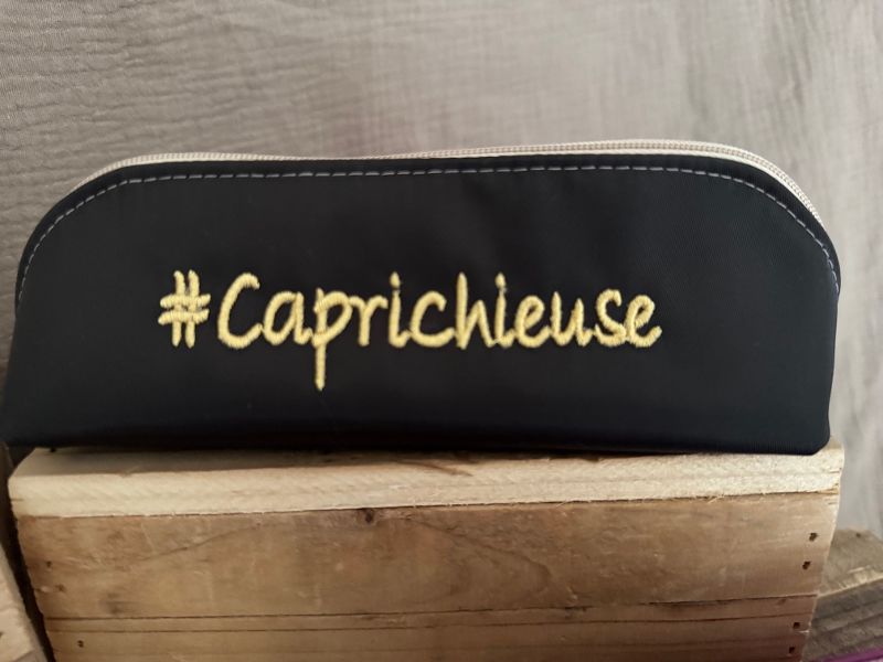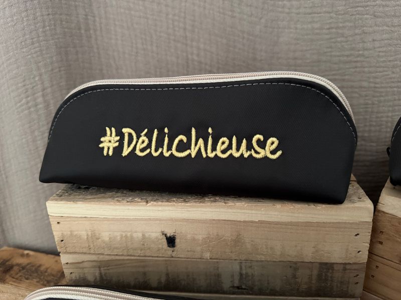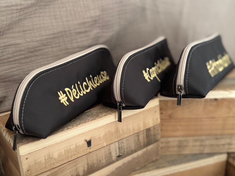 En toile Econyl ( sacs pliages longchamps ) cette trousse en modele unique avec doublure est ornée d'une broderie de couleur OR qui conviendra a tout le monde .